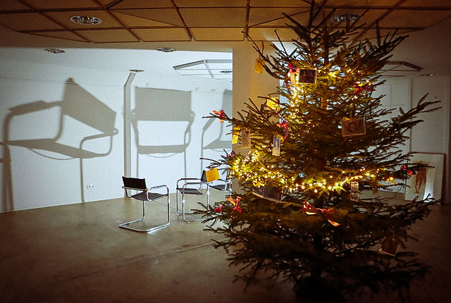 Durch’s KUNSTfenster gesehen: ARTweihnachtsbaum in der Galerie HAUS BACHRACH, 2020 / Foto © Meike Lothmann